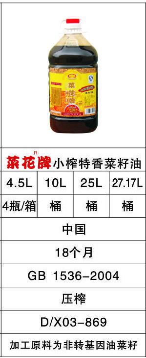 上一篇: 菜花牌壓榨黃菜籽油