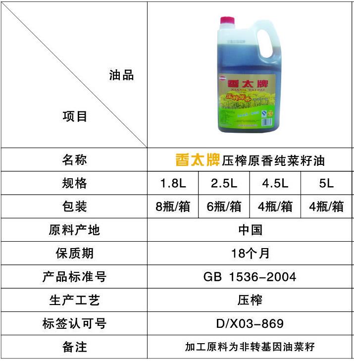 首頁 > > 盛業(yè)產(chǎn)品 > 香太牌菜籽油