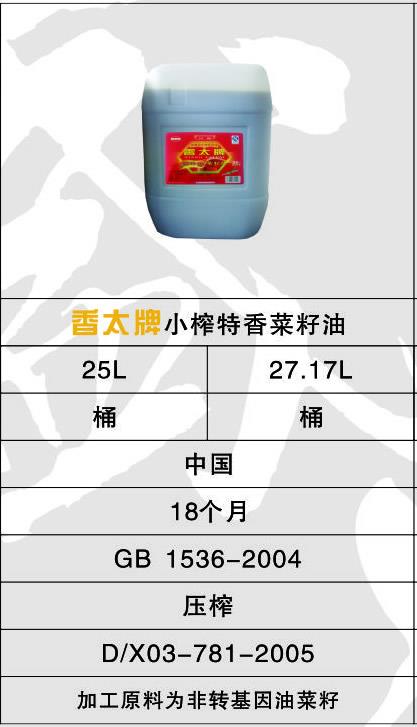 下一篇: 香太牌純菜籽油